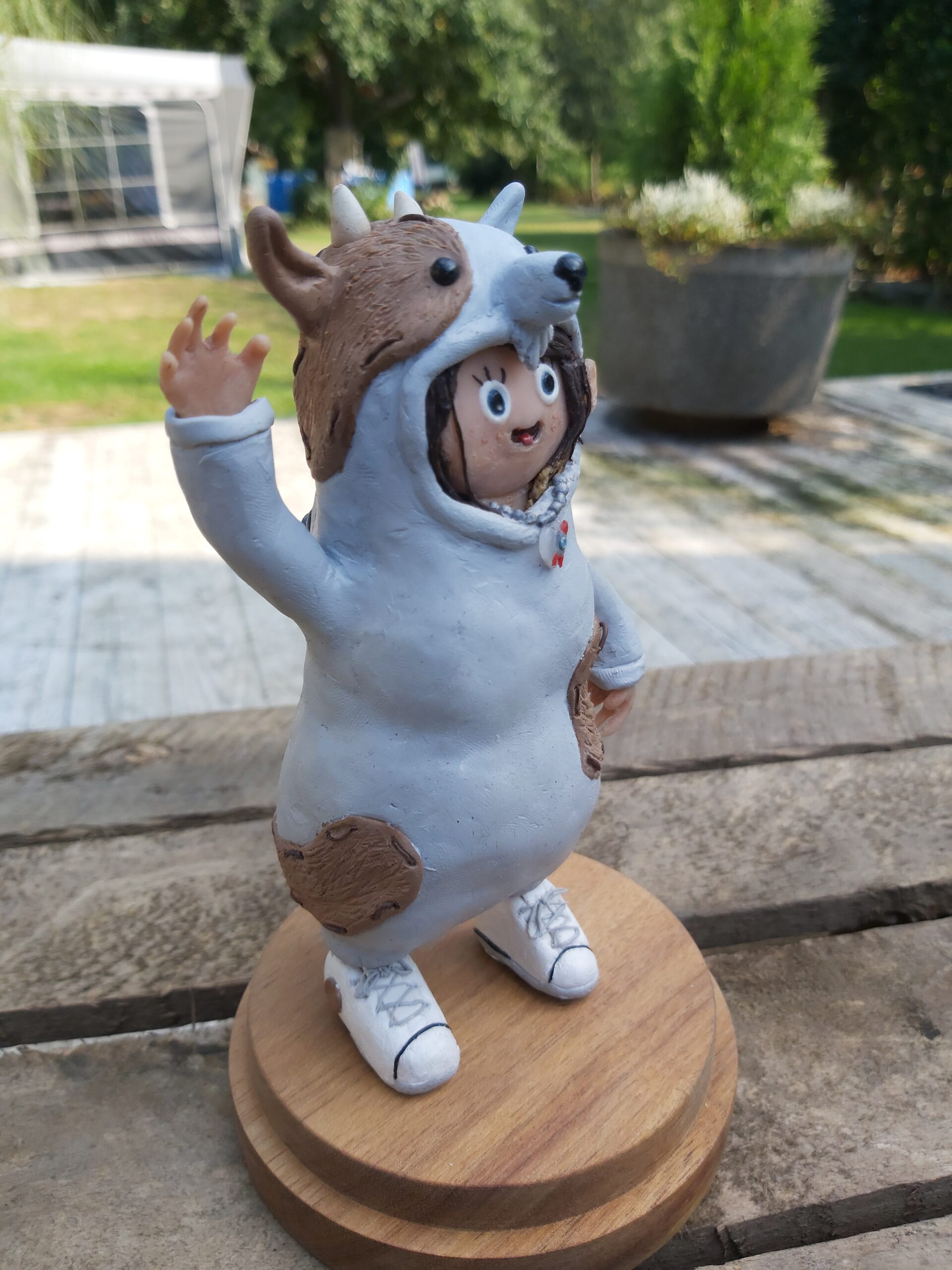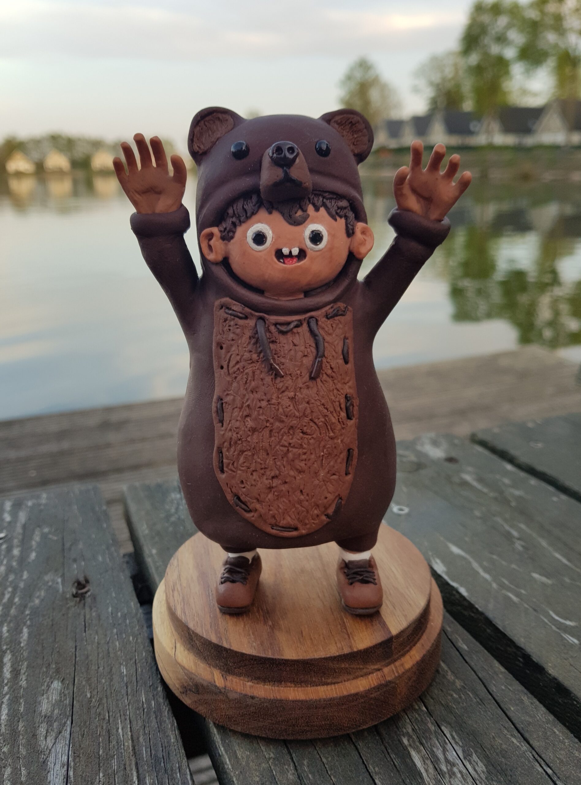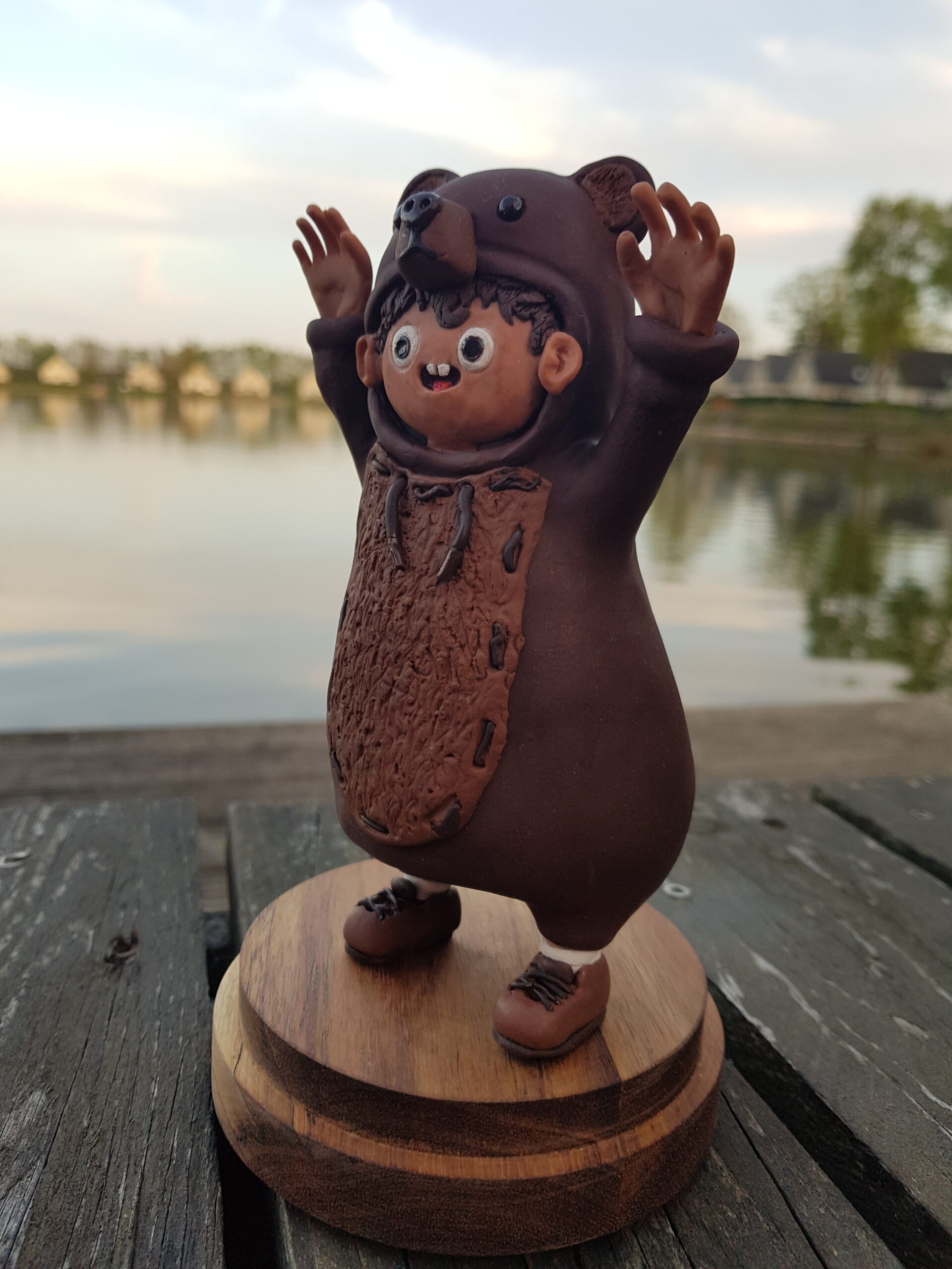 One of my first times working with the medium of polymer clay. It started from a sketch resembling a caricature of me as a kid wearing a suit of my favourite animal, a bear.