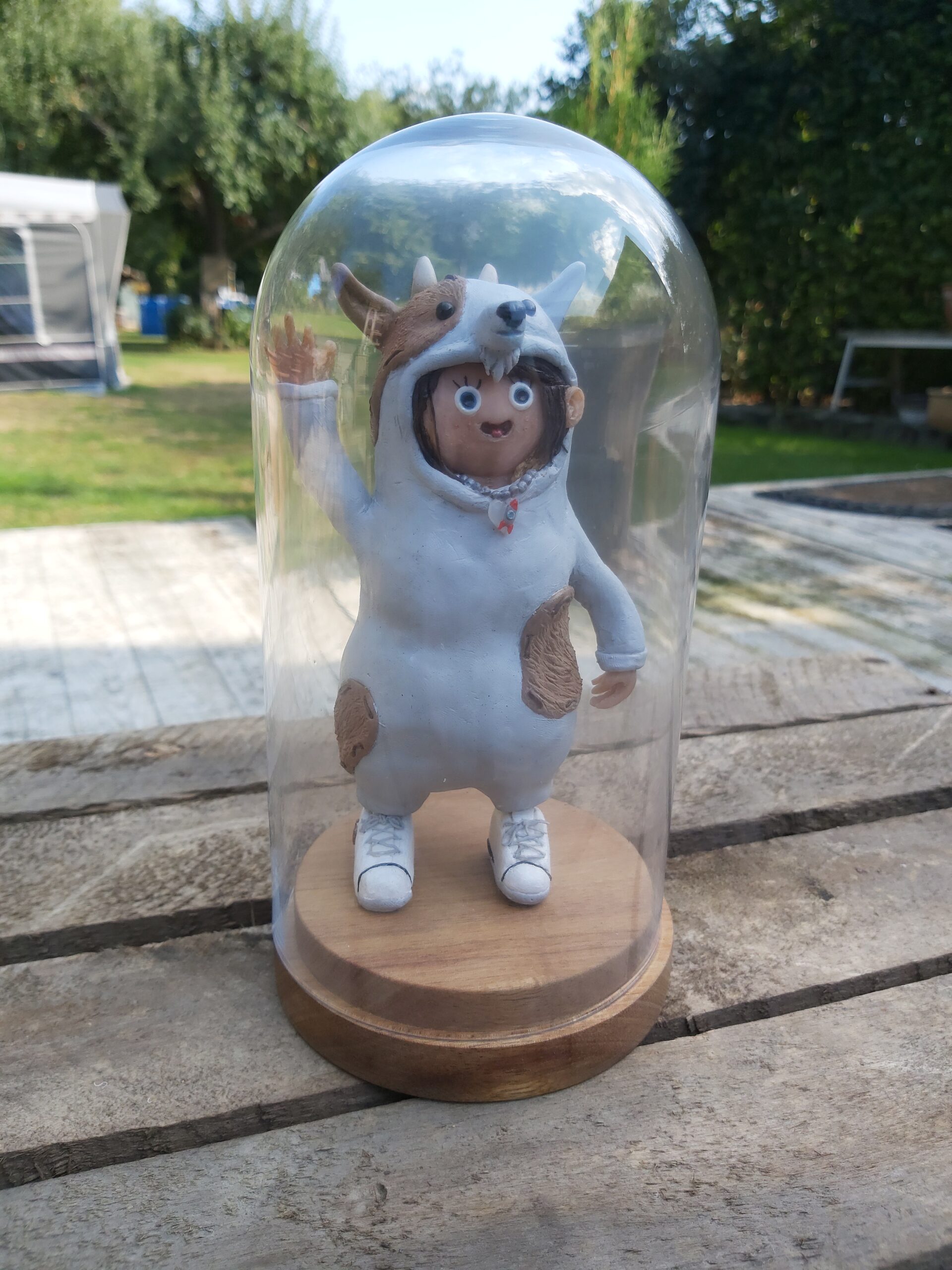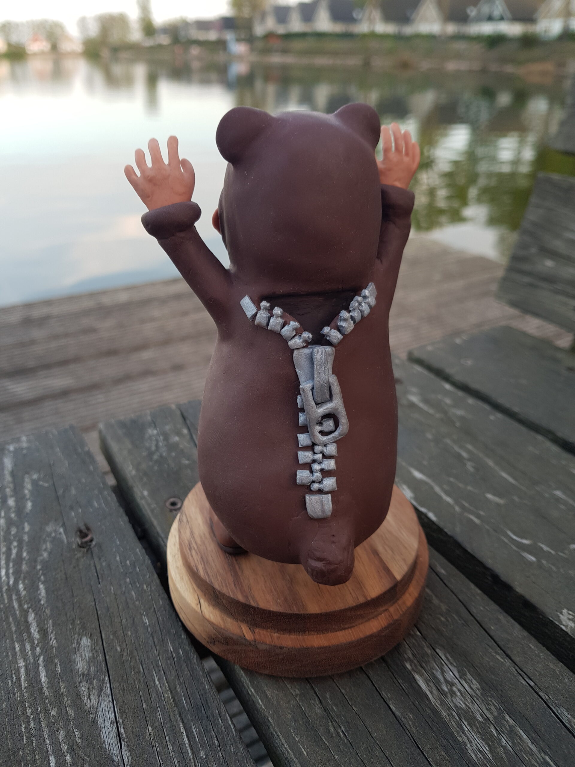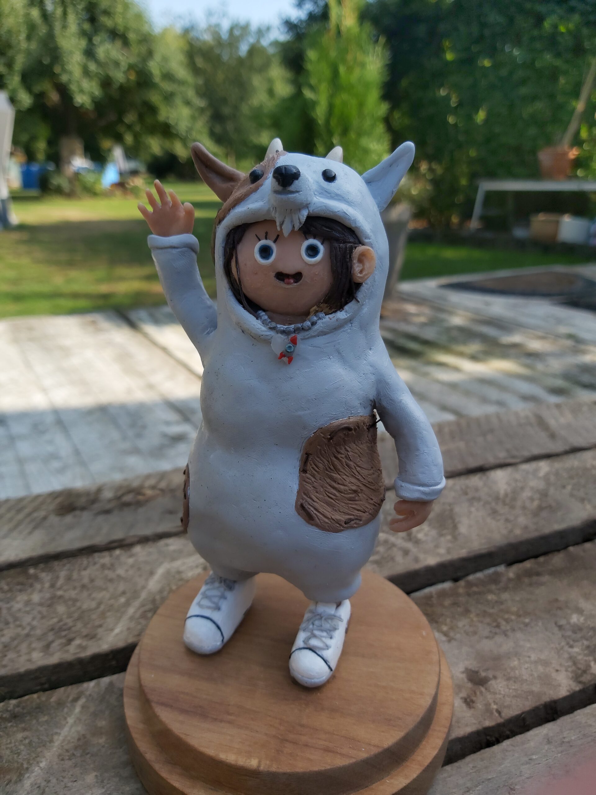 One of my first times working with the medium of polymer clay. It started from a sketch resembling a caricature of me as a kid wearing a suit of my favourite animal, a bear.