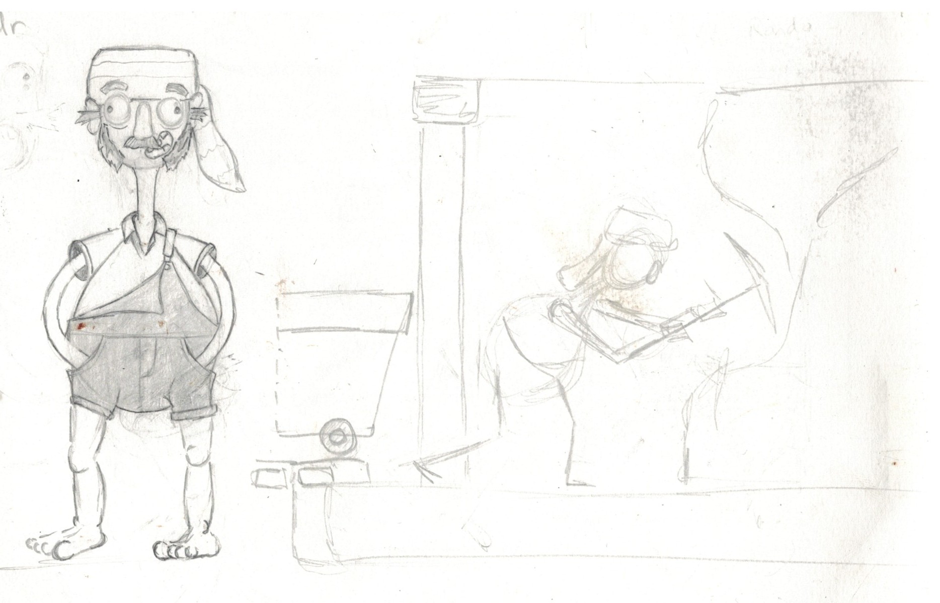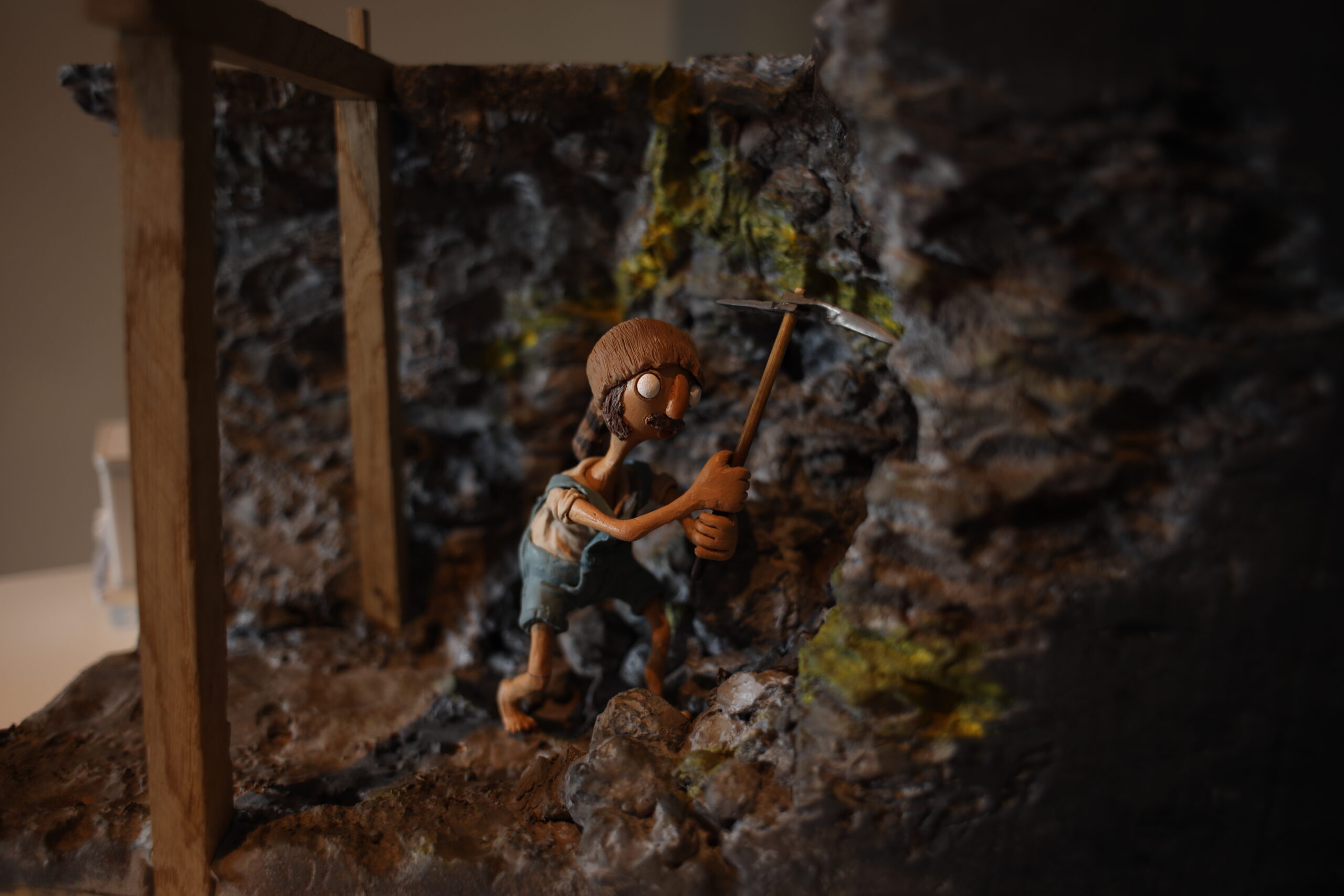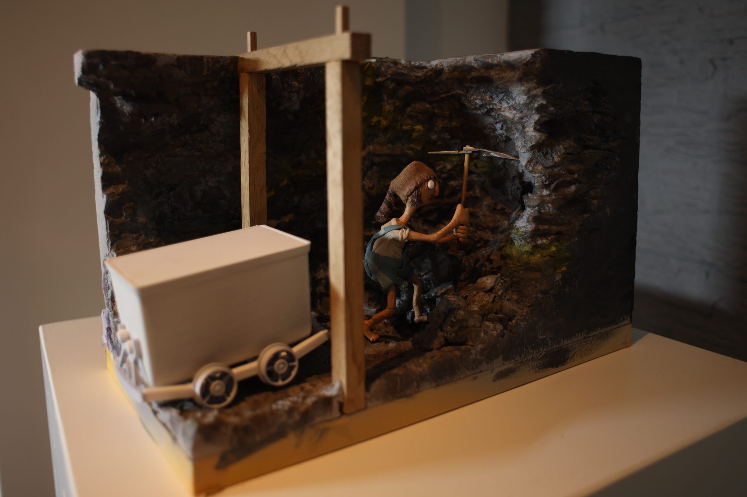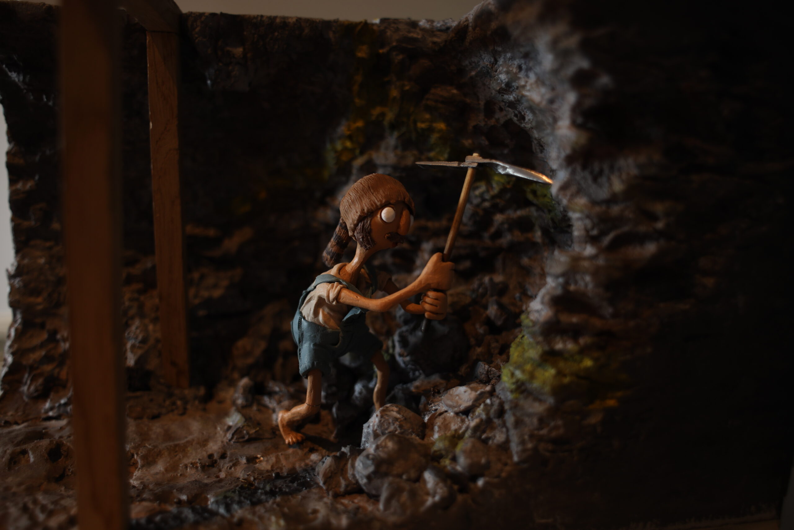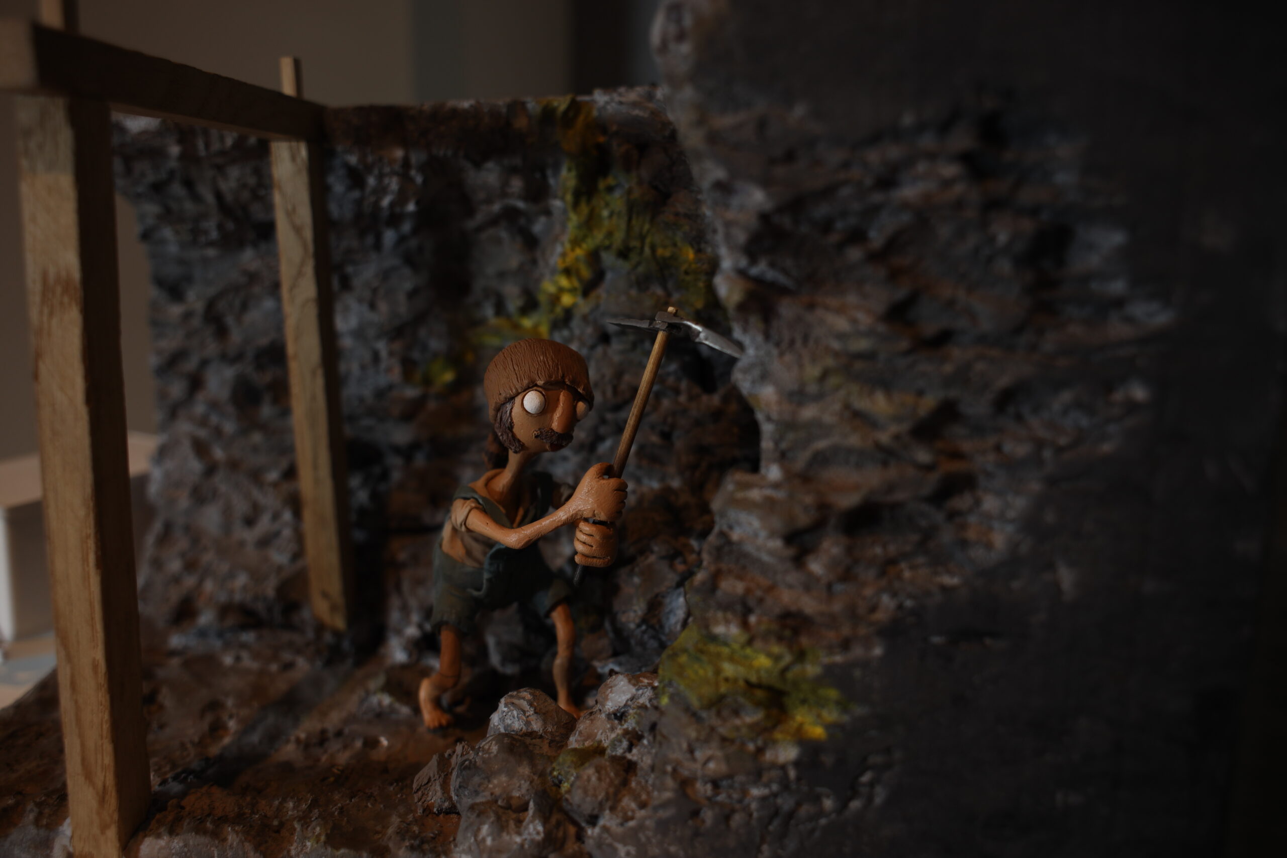I wanted to turn another sketch into a physical model. I first made the prospector himself. Then I took a big nail and forged it into a tiny pickaxe.