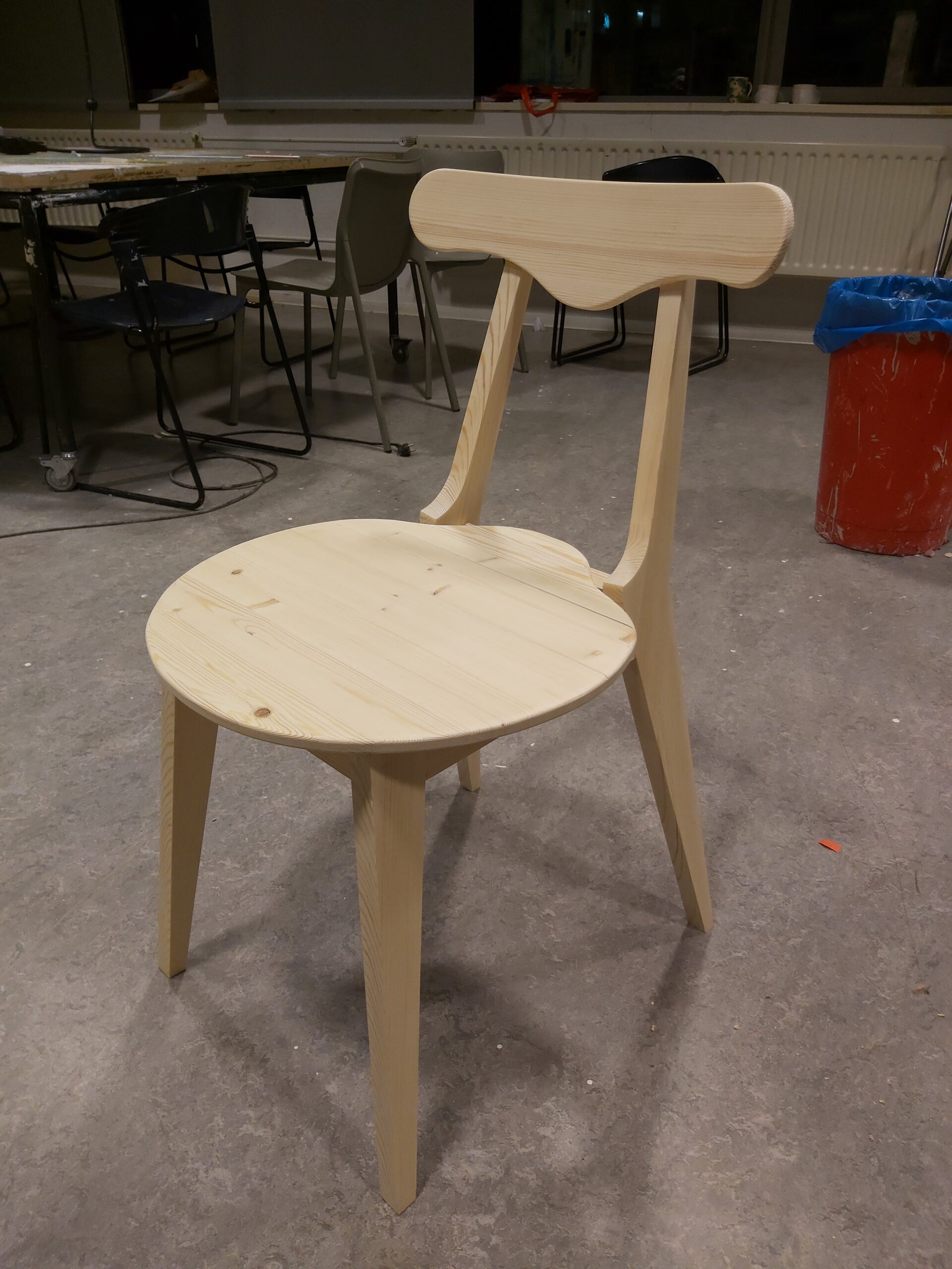 A dining chair made out of pine. With only mortise and tenon connections and a bit of glue to keep it as pure as possible.