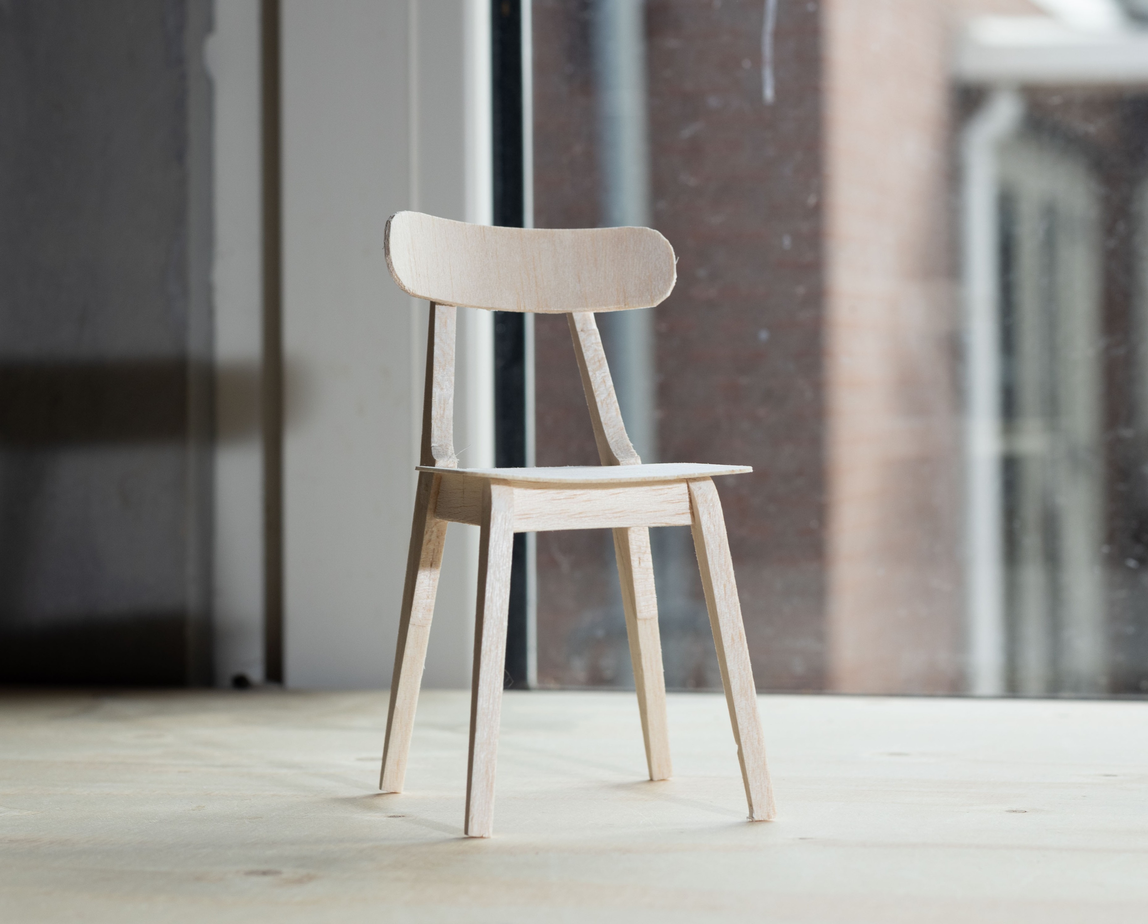 First with balsa wood we created multiple 1:5 scale chairs. After multiple iterations and improvements, I made a cardboard mock-up in the correct scale. That helped visualizing what worked and what didn’t. Further I made a technical drawing and 3d model to help me in the making process.